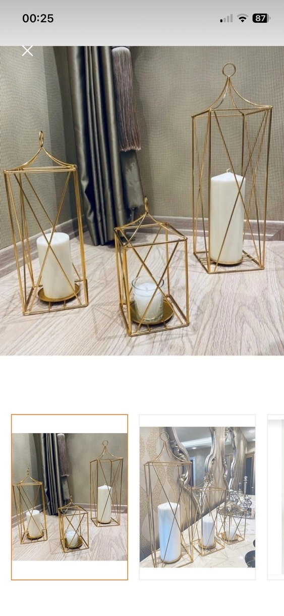 Geometrik tasarımlı, altın renkli metalden yapılmış üçlü mumluk seti, büyük ve küçük mumlar için uygundur. ️