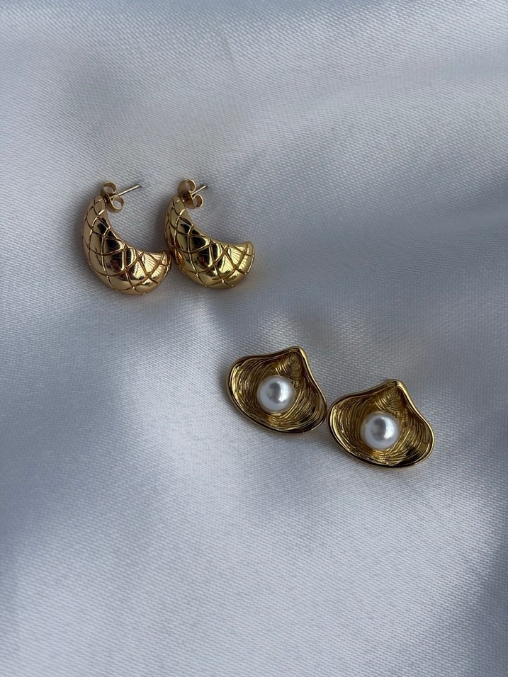 Parlak altın renkli, kısa uzunlukta paslanmaz çelik kadın küpeler. Boncuklu ve desenli tasarıma sahip, günlük kullanım için minimalist ve sokak tarzına uygun.Ürün fiyatı tek ürün içindir beğendiğiniz ürünü yorumlarda belirtin ilan açalım