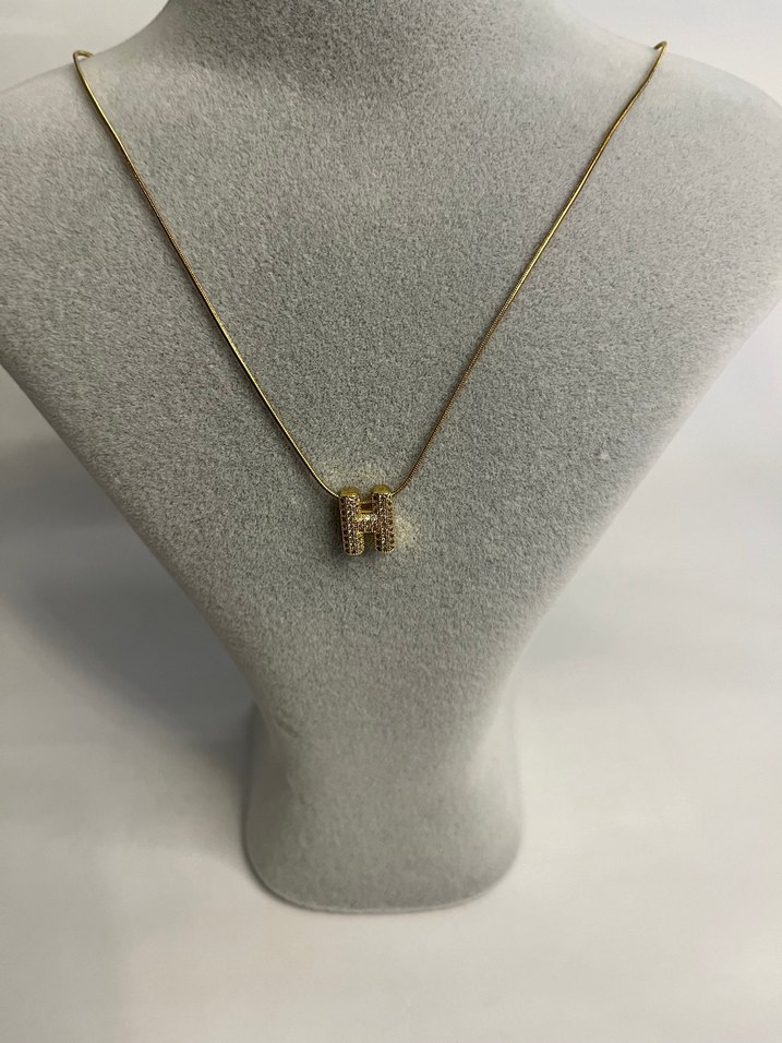 Altın Renk Mini Boncuklu H Harfi Kolye