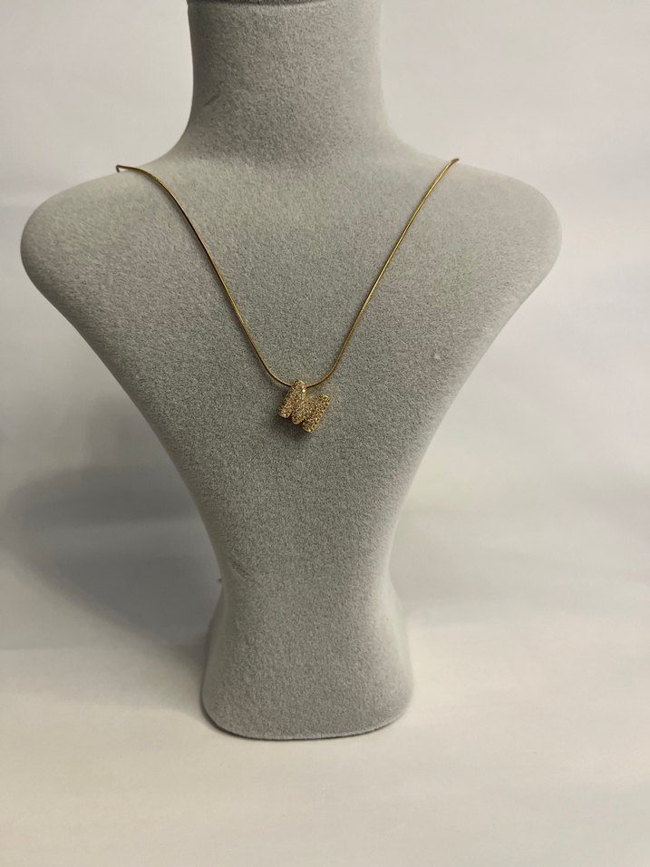 Altın Renk Mini Boncuklu M Harfi Kolye
