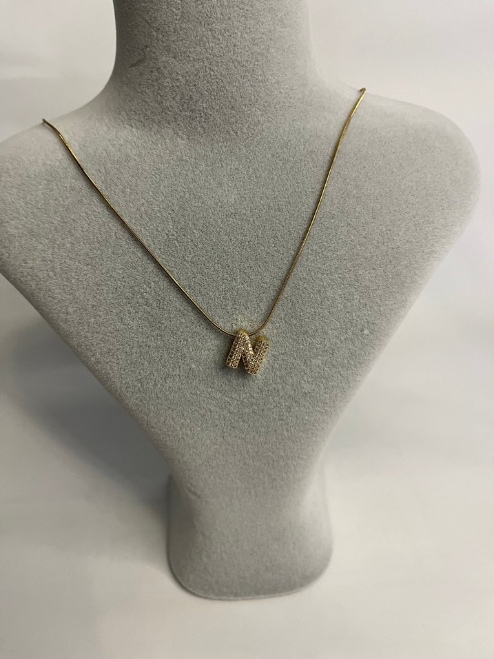 Altın Renk Mini Boncuklu N Harfi Kolye