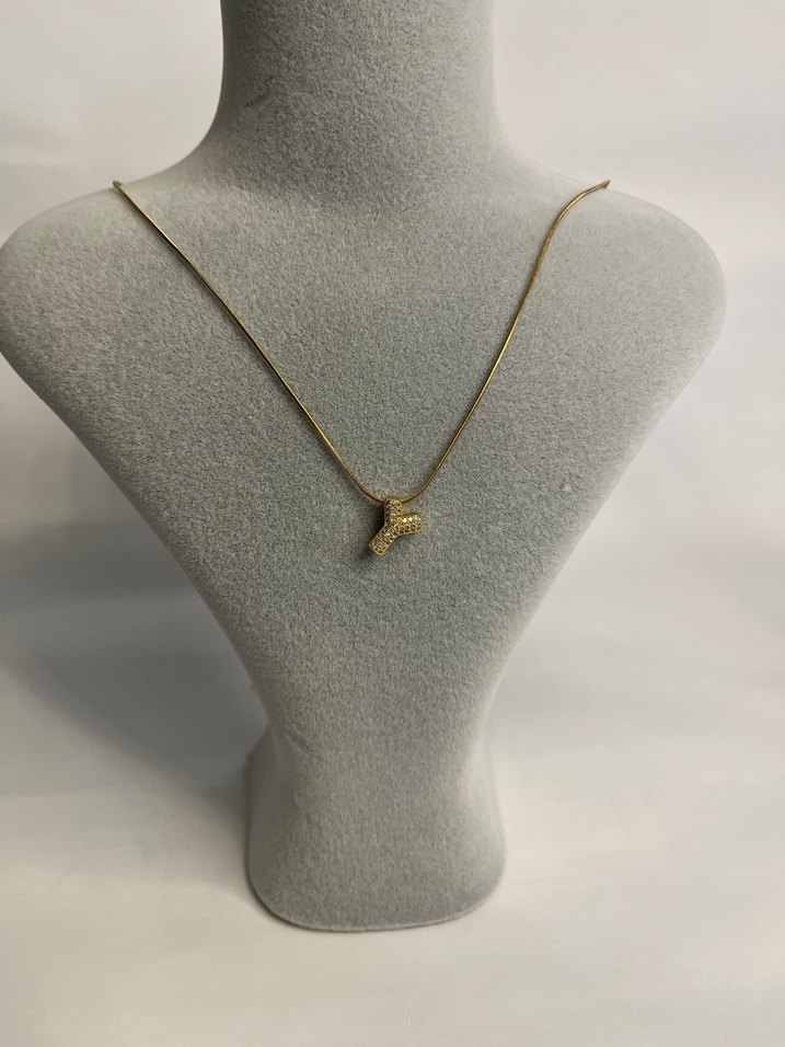 Altın Renk Mini Boncuklu Y Harfi Kolye
