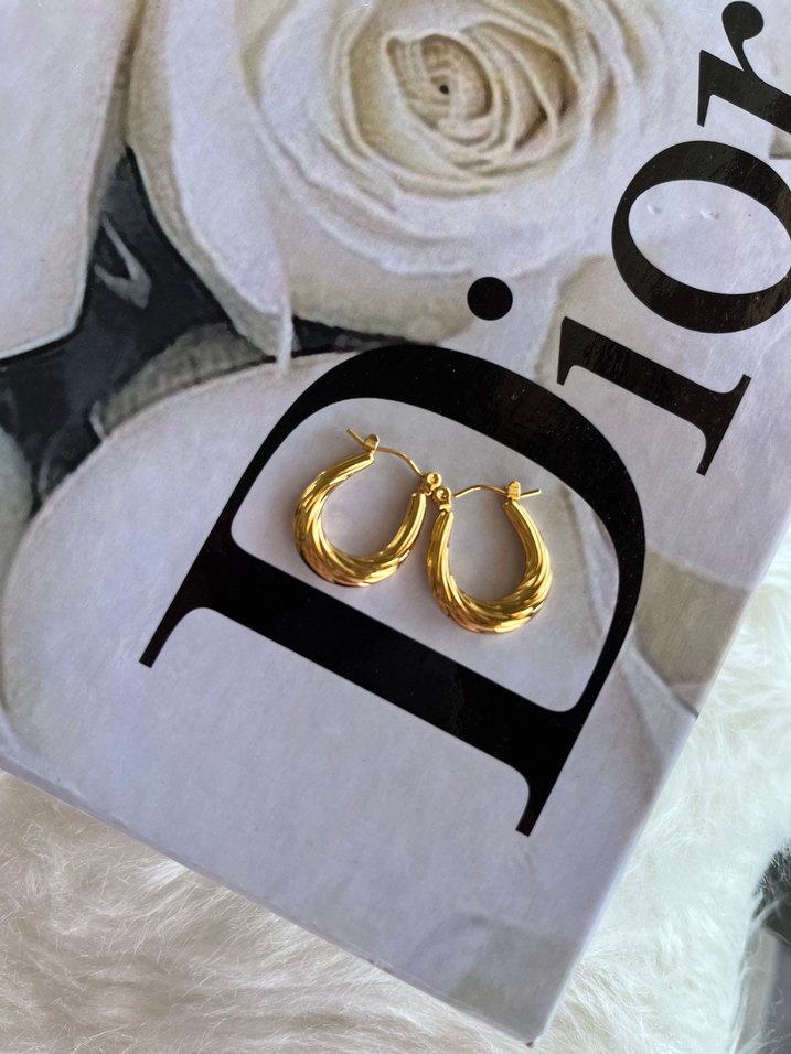 Parlak altın renkli, midi boy kemerli tasarıma sahip küpeler. Minimalist sokak tarzı, klasik zarafet ve günlük kullanım için uygundur.✨ Ürünlerimiz altın kaplamadır. Ürünlerimiz kararma ve solmaya dayanıklıdır. Ürünlerimiz altın kaplama olduğu için alerji yapmamaktadır.