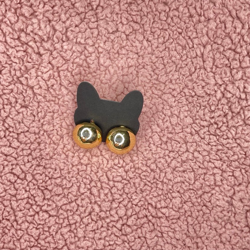 Altın renkli, düğme şeklinde mini küpeler. Parlak ve pürüzsüz yüzeye sahip, rock punk tarzına küçük bir dokunuş katıyor.