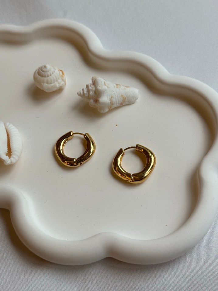 Parlak altın renkli, kısa mini halka küpeler. Desensiz, sade tasarımıyla günlük kullanıma uygun çağdaş ve minimalist şıklık sunar. ✨