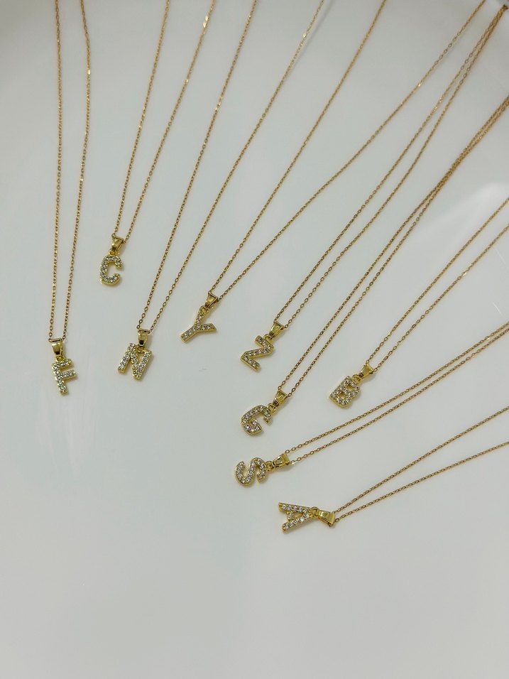 Y/ F / S / C tükendi ❗️Detaylı zincir ve nakışlı harf figürlü, altın renkli kısa uzunlukta mini kolyeler, günlük sokak stiline uygun. ✨