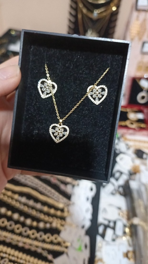 Altın Renk Mini İşlemeli Kalp Kolye seti