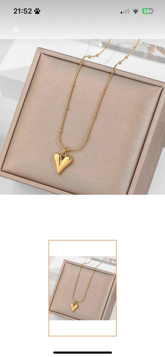 Kısa uzunlukta altın renkli, minimal tasarımlı kalp figürlü detaylı zincir kolye. Romantik akşamlar için çağdaş ve klasik şıklık sunar.