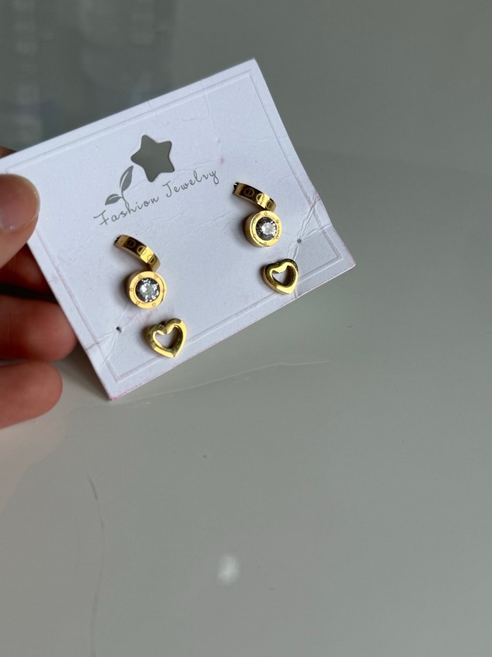 Altın Renk Mini Kalp ve Taşlı Küpe