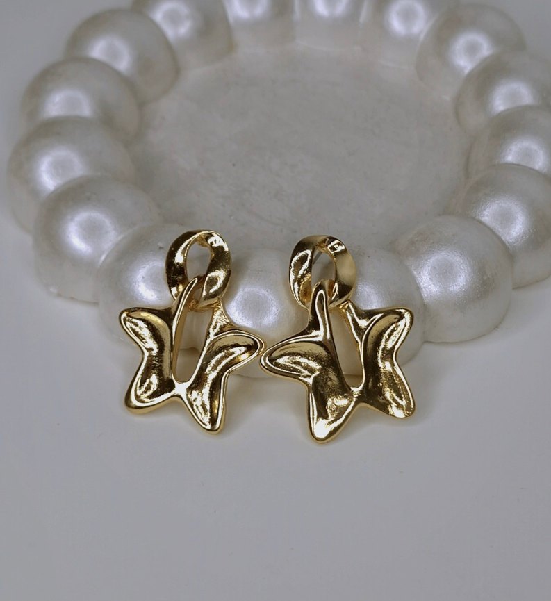 Parlak altın renkli, kelebek şekilli mini küpeler, tokalı tasarımıyla klasik şıklık için uygundur. Minimalist ve çağdaş tarzda.