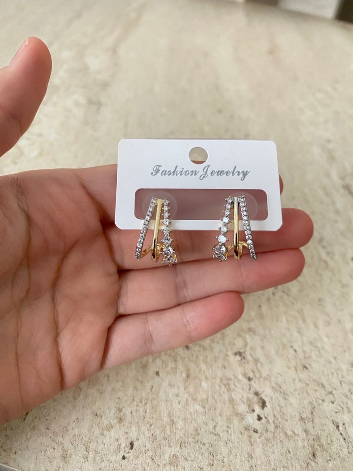 Altın renkli, mini uzunlukta payetli ve baskılı detaylara sahip küpeler. Minimalist ve çağdaş tasarımıyla günlük kullanıma uygun. ✨