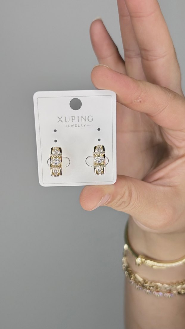 Altın renkli, mini uzunlukta taş detaylara sahip küpeler. Modern klasik ve minimalist tasarımıyla günlük kullanıma uygundur. Marka: Xuping Jewelry. ✨