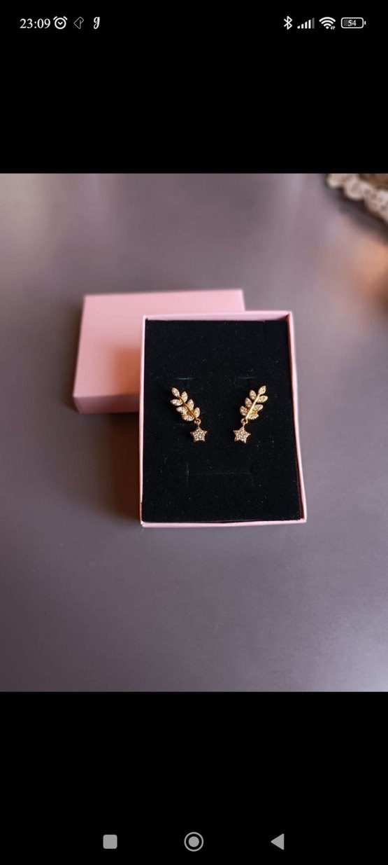Altın renginde, mini boyda, taşlı ve desenli, modern klasik tarzda romantik gece için tasarlanmış küpeler. ✨