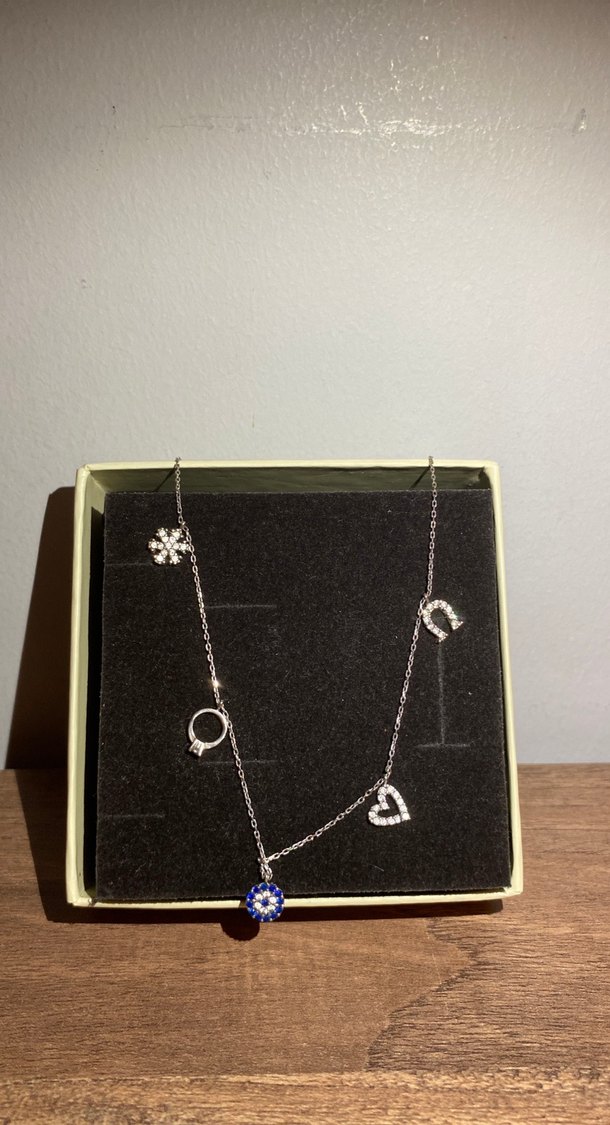 Günlük kullanıma uygun, zincir detaylı kısa altın renkli kadın kolye. İşlemeli küçük süslemeler içerir.