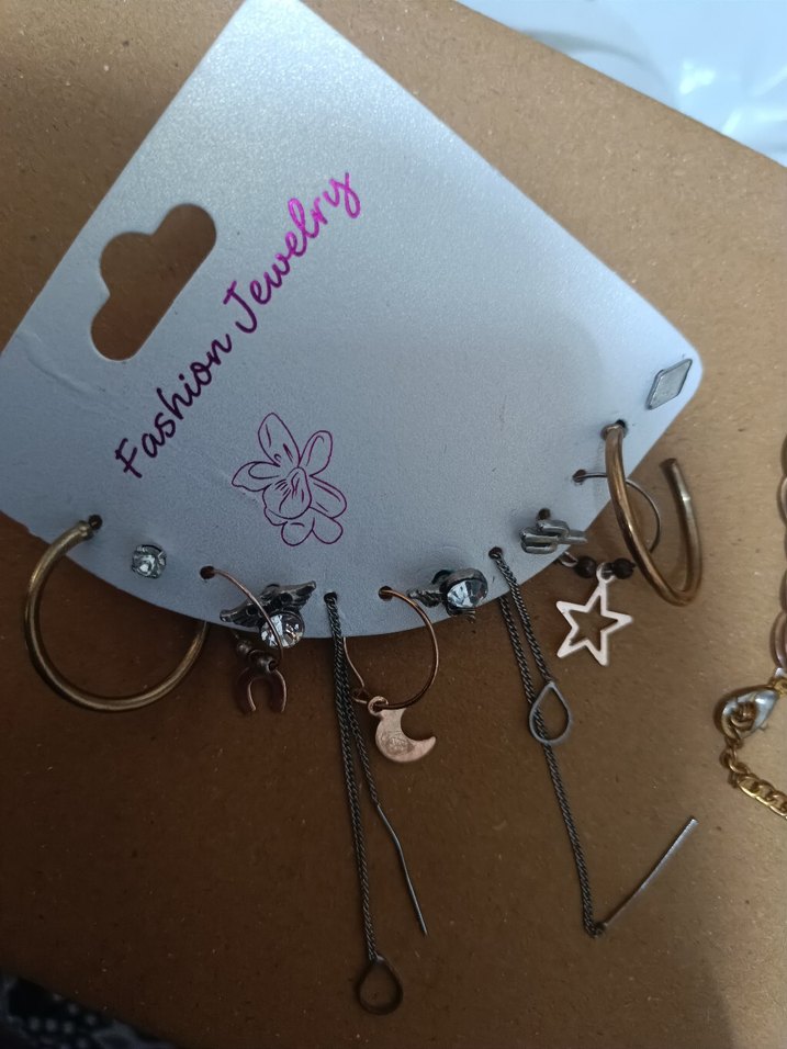 Parlak altın renkli kısa boyda, zincir detaylı ve baskılı desenlere sahip bohem tarzda kadın küpeleri, günlük kullanım için uygun.
