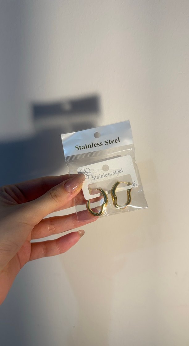 Parlak altın renkli, paslanmaz çelikten yapılmış minimal baskılı midi uzunlukta küpeler, günlük sokak stiline zahmetsiz şıklık katıyor. ✨