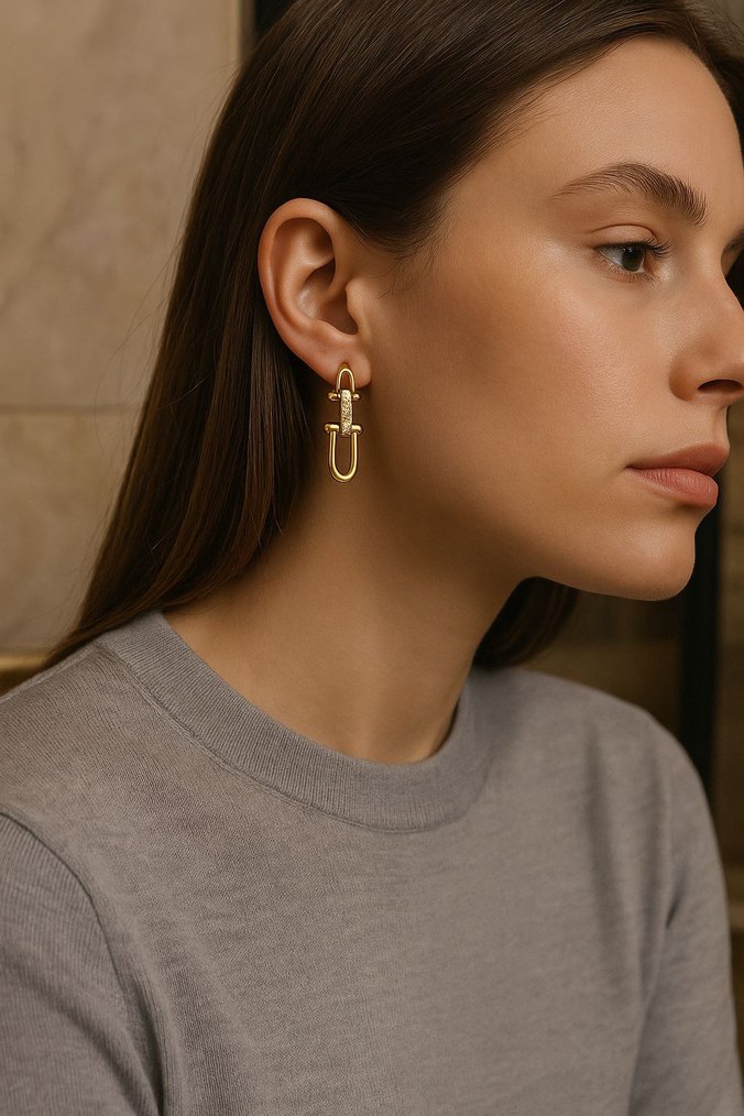 Günlük kullanıma uygun, çağdaş tasarımlı altın renk minimalist midi küpe. Zahmetsiz şıklık sunar. ✨