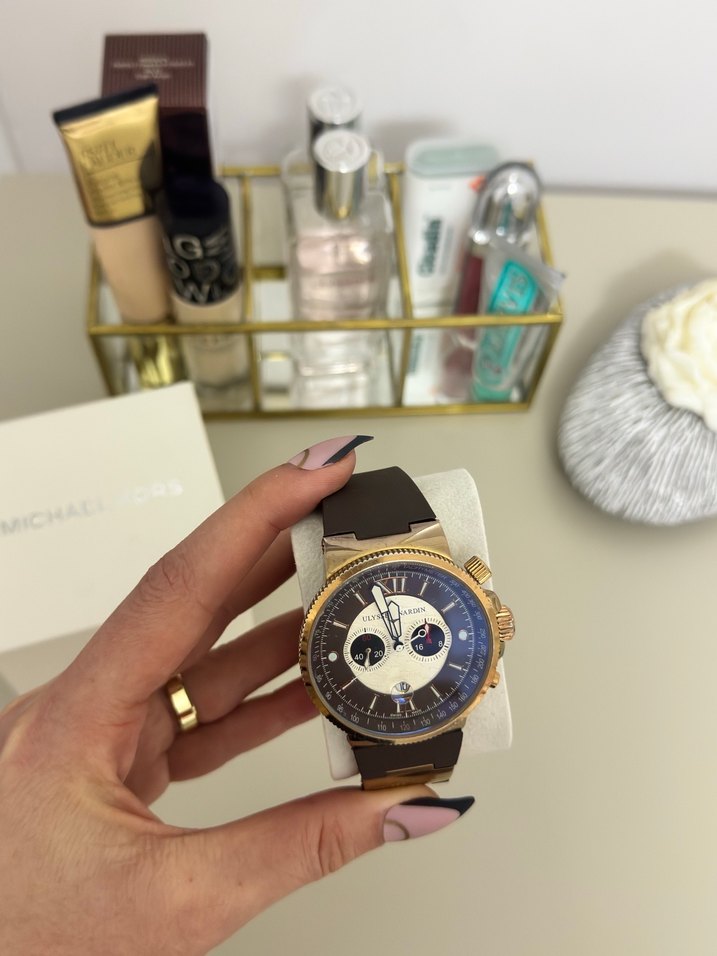 Koyu kahverengi kayış ve altın renk kasa ile modern klasik tasarıma sahip erkek kol saati. Çoklu alt kadranlar fonksiyonellik sunar.⌚Hollanda’dan hediye geldi