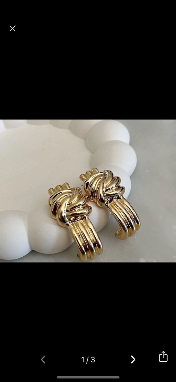 Parlak altın renkte, elastik detaylı modern klasik mini küpeler. Paris tarzı ve düğünler için kısa uzunlukta, zamansız şıklık sunar. ✨