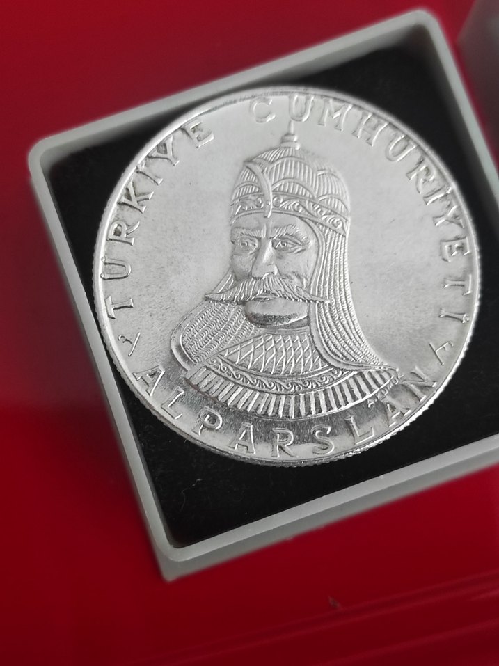 Parlak altın renkte, vintage tarzda Alparslan figürlü, Türkiye Cumhuriyeti yazılı mütevazı erkek rozeti. ✨,19 gram cil gümüş