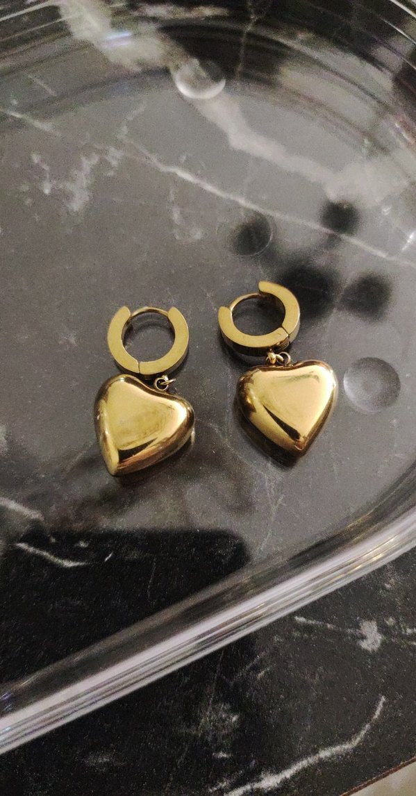 Altın Renk Parlak Çelik Kalp Şeklinde Küpe