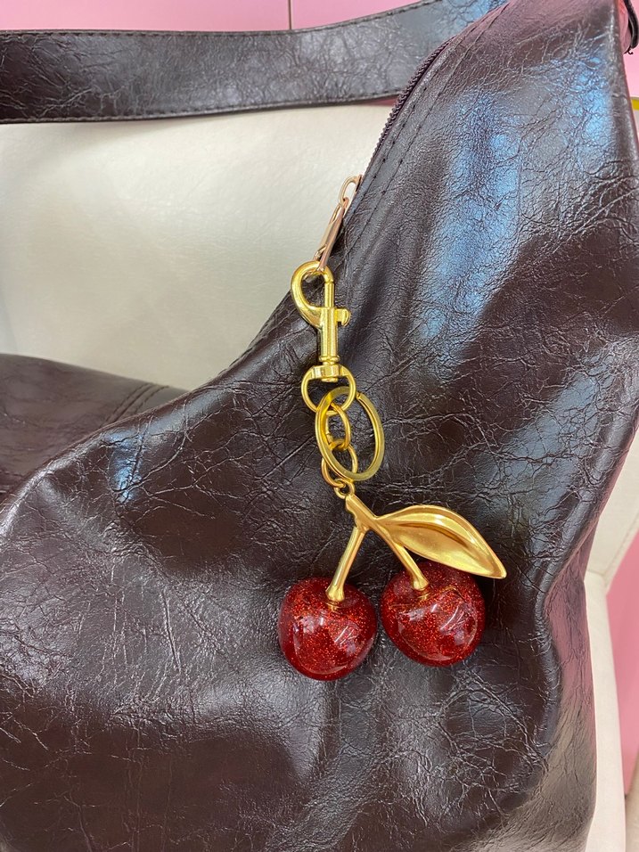 Altın Renk Parlak Kirazlı Kadın Anahtarlık