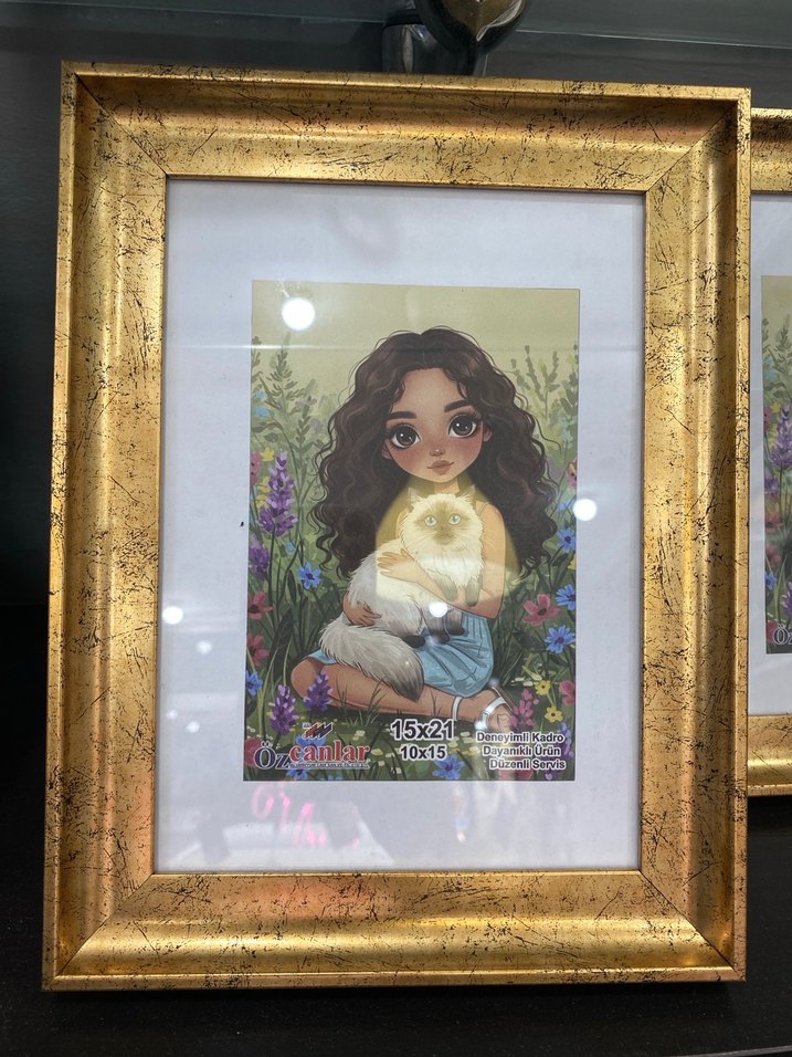 Altın renkli, pastel tonlarda 15x21 cm boyutunda dekoratif dokulu çerçeve. ️