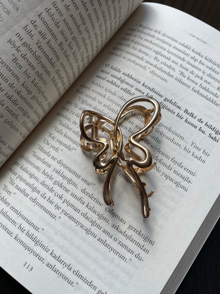 Şıklığıyla öne çıkan altın renk toka, saçına zarif bir dokunuş katıyor. Hiç kullanılmamış, yepyeni!