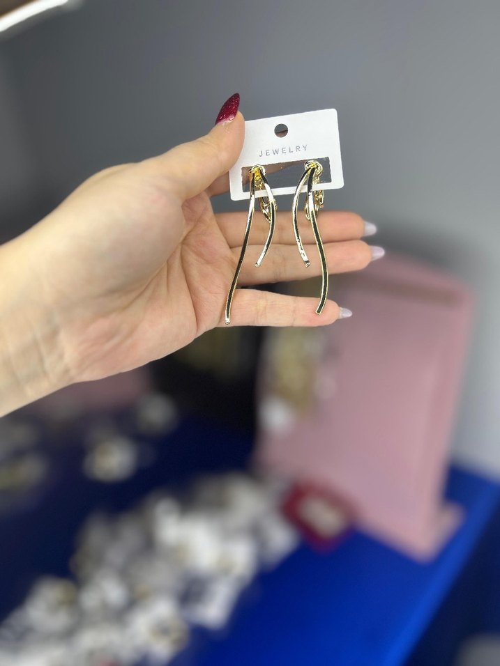Altın renkli, yılan desenli ve elastik yapıya sahip kısa uzunlukta minimalist küpeler, günlük kullanım için modern bir tarz sunar.
