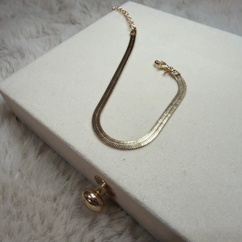 Parlak yılan deseni ve zincir detaylı altın renkli bileklik, günlük kullanım için uygundur. ✨