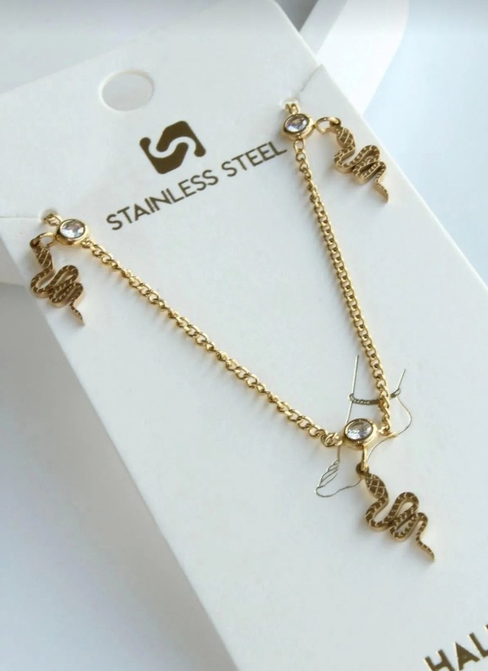 Altın Renk Yılan Desenli Zincir Detaylı Vücut Aksesuarı