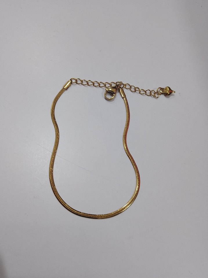 Kadın bileklik, parlak altın renkli zincir detaylıdır, sade bohem tarzına uygundur.