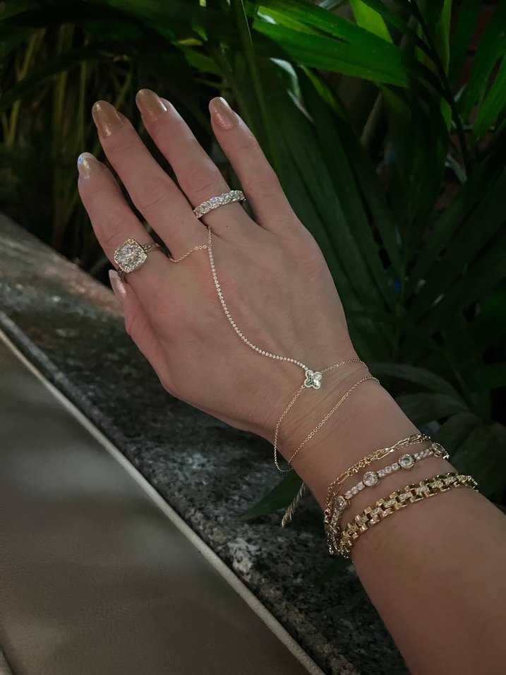 Altın renkli, zincir detaylı ve ince yılan desenli bohem tarzda kadın el zinciri. Düğünler için uygun, şık ve göz alıcı bir aksesuar.