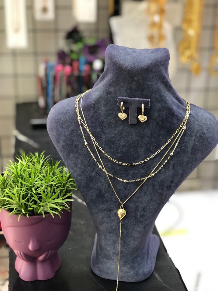 Altın renkli, kısa uzunlukta zincir detaylı bohem kolye seti, kalp şeklinde uyumlu küpelerle birlikte. Minimalist ve günlük kullanıma uygun. Y kolye ✨
