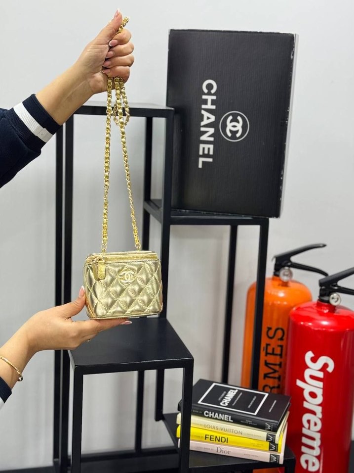 Chanel Vanity Mini A+ Quality ! ➡️11 Cm ⬆️10 Cm Altın renkli, parlak yılan desenli deri çanta, zincir detaylarıyla klasik zarafeti modern Paris tarzıyla buluşturuyor.