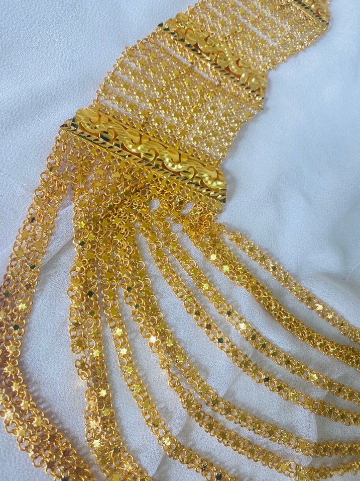 Parlak işlemeli detaylara sahip, çoklu zincirlerden oluşan altın renk kadın el zinciri. Düğün ve gösterişli tarzlar için uygundur. ✨