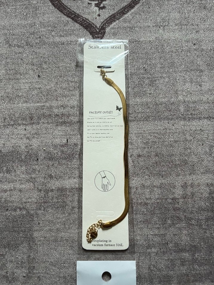 Paslanmaz çelikten yapılmış, altın renkli, zincir detaylı ve yılan desenli kadın bileklik. Günlük kullanıma uygun, çağdaş ve minimalist tarzda.
