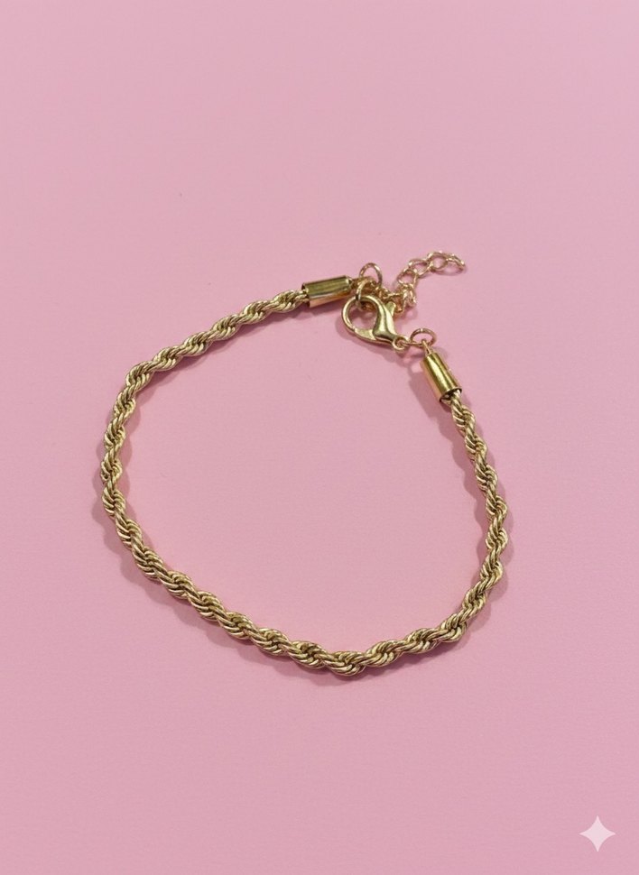 Kadın bileklik, altın renkli zincir detaylarıyla minimalist tarzda tasarlanmıştır. İnce yılan desenli ve romantik buluşmalar için uygundur.