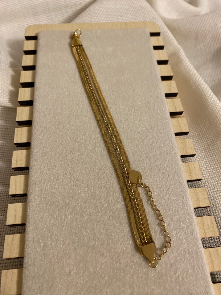 Altın parlak renkte, zincir detaylı ve hafif yılan desenli kadın bileklik, günlük kullanıma uygun.