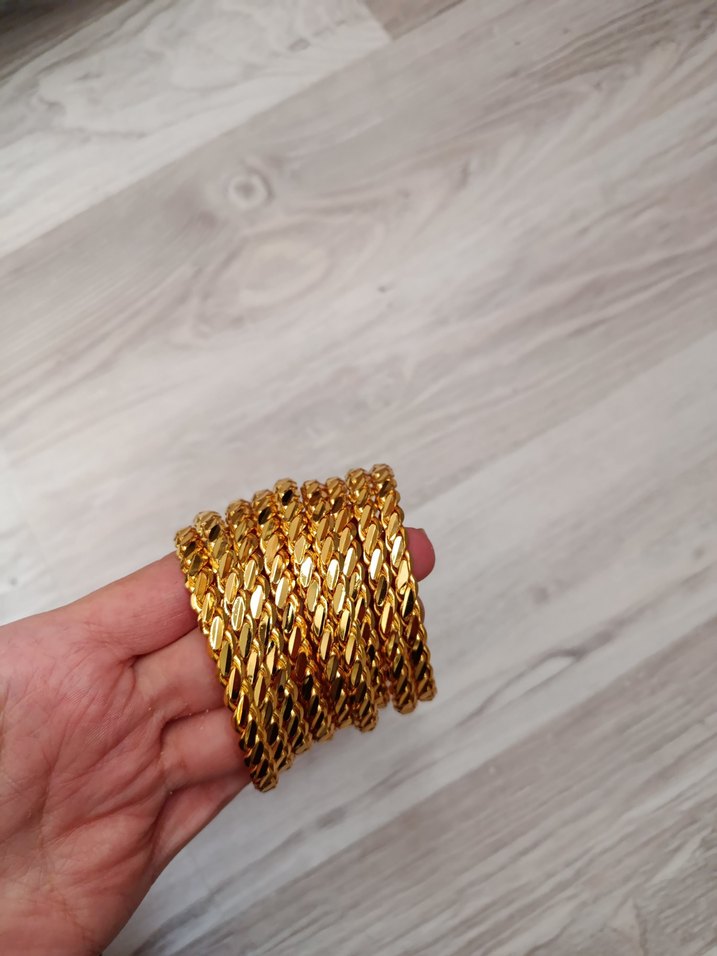 Altın renkli, zincir detaylı ve yılan desenli kadın bileklik. Minimalist ve renkli tarzıyla günlük kullanıma uygundur.