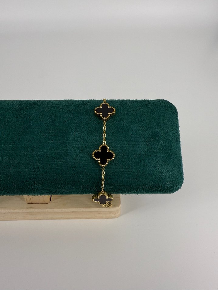 Altın renkli kadın bileklik, zincir detaylı ve işlemeli koyu desenlere sahip. Modern klasik ve minimalist şıklığı günlük kullanım için sunar. ✨