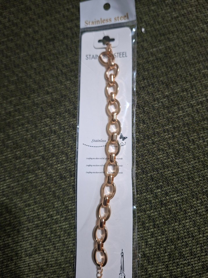 Parlak altın renk zincir detaylı kadın bileklik. Minimalist tarzıyla günlük sokak stiline uygundur.Çelik değildir
