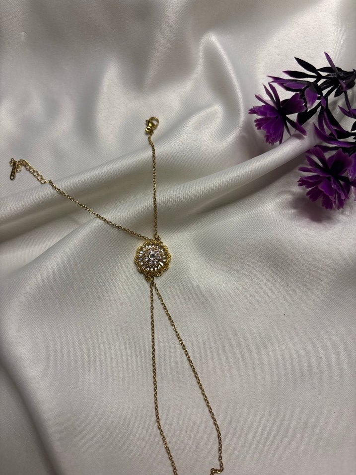 Altın renkli, zincir detaylı kadın el zinciri. Bohem tarzıyla günlük kullanıma uygundur. ✨