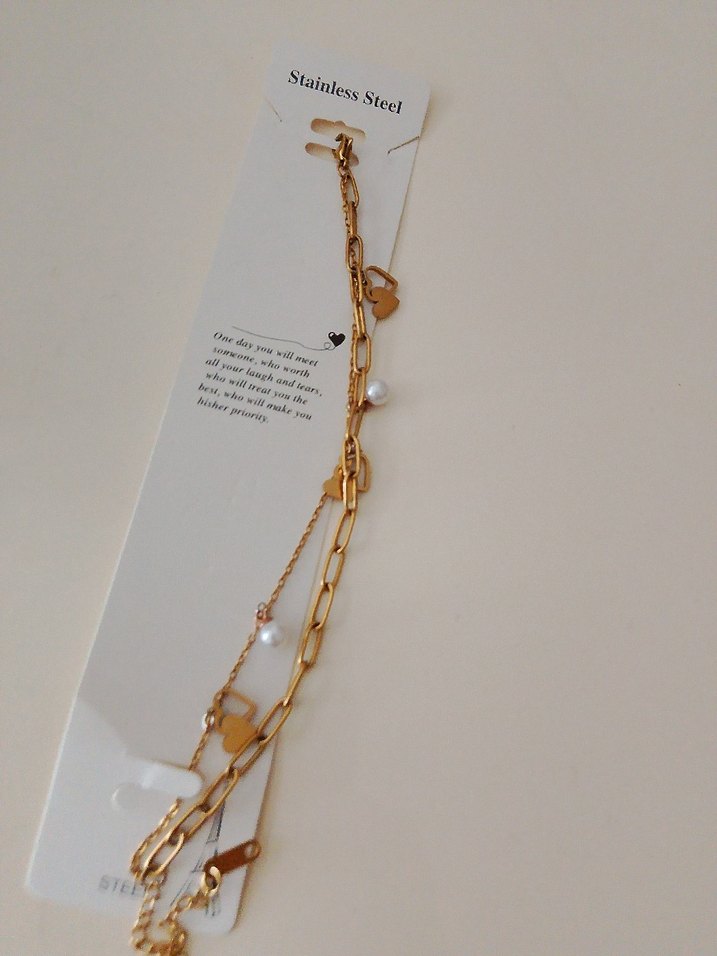 Paslanmaz çelikten yapılmış, inci detaylı altın renk kadın el zinciri. Minimalist ve çağdaş tasarım, günlük kullanım için uygundur. ✨bır hafta kulandım celık bileklik hal hal