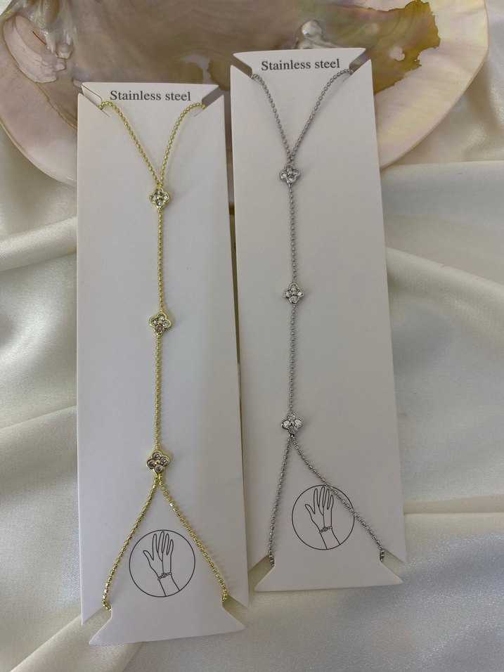 Hafif altın ve gümüş renkli paslanmaz çelikten, nakışlı zincir detaylı, minimalist bohem tarzda günlük kullanıma uygun kadın el zincirleri. ✨