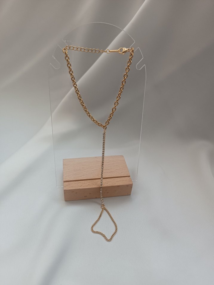 Altın renkli, zincir detaylı kadın el zinciri. Minimalist ve bohem tarzıyla günlük kullanıma uygundur, trendsetterlar için ideal. ✨