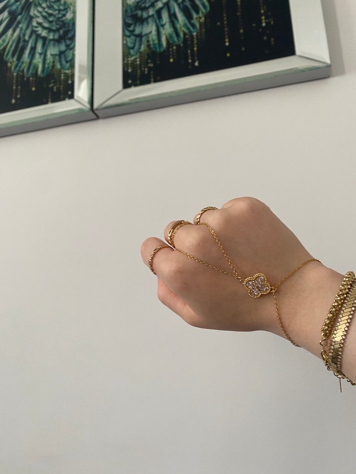 Altın Renk Zincir Detaylı Kadın El Zinciri çelik şahmeran