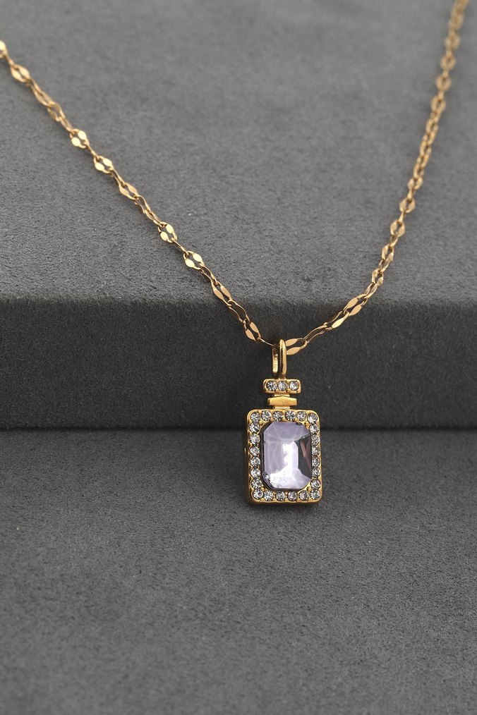 Altın renk zincir detaylı kolye, pastel renkli taş ve çevresinde parlak kristallerle günlük şıklık için uygundur. ✨ 316L Paslanmaz çelikten üretilmiştir. Kararma ve renk solması gibi deformasyonlar yaşanmaz. Sıvıya karşı dayanıklıdır. Havuz, deniz, duş gibi alanlarda sorunsuz bir kullanım imkanı sunar