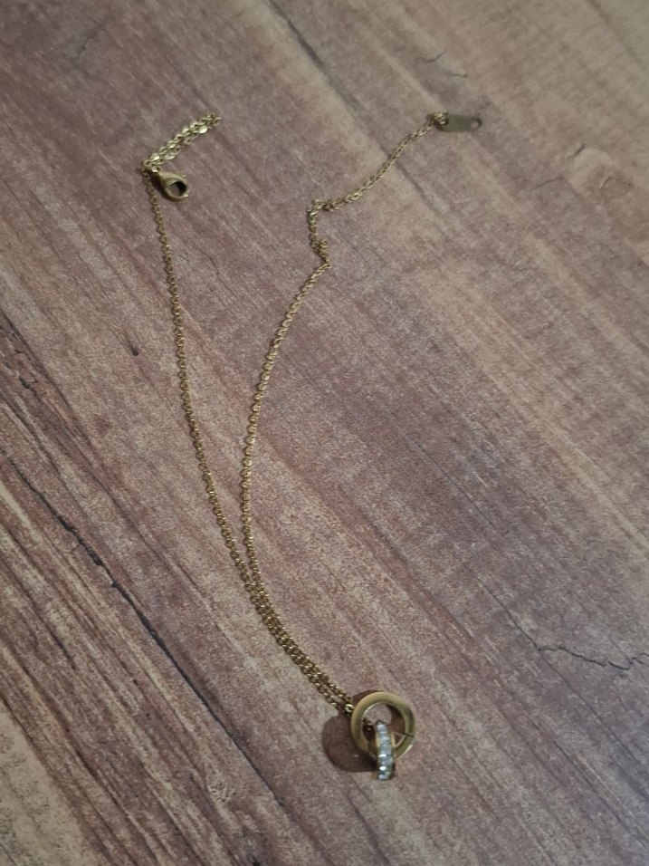 Kadın kolye, detaylı altın renk zincir ve benzersiz dairesel kolye ucu ile minimalist ve streetwear tarzda, günlük kullanım için uygundur.