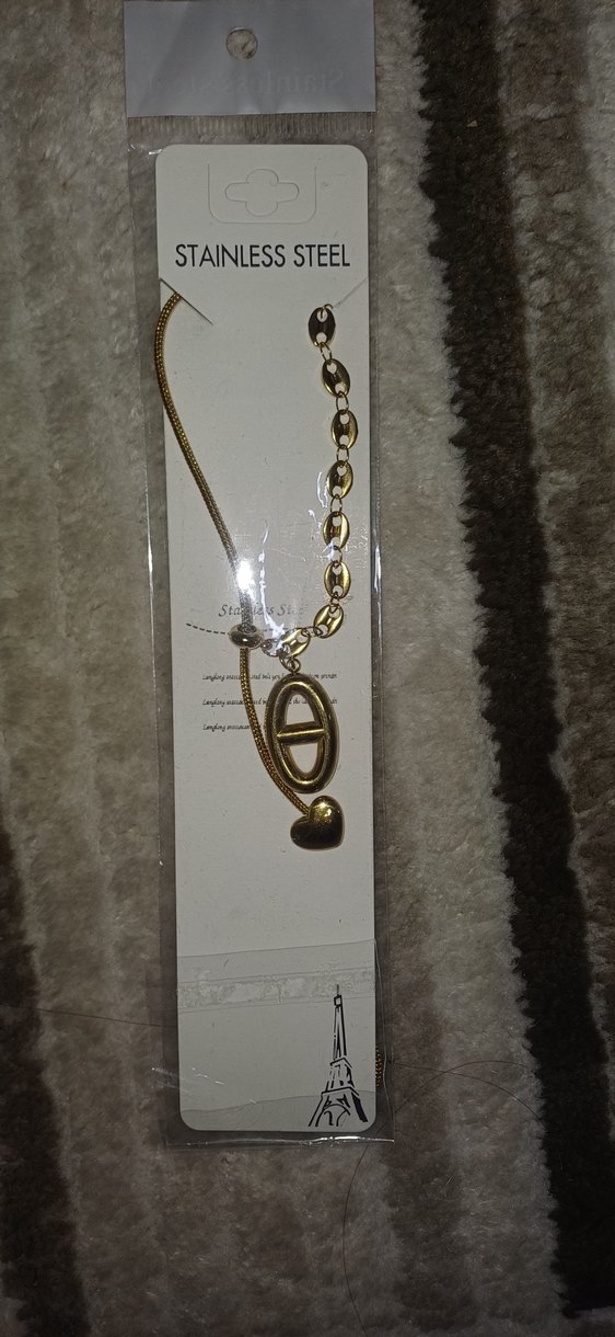 Altın Renk Zincir Detaylı Kadın kolye çelik